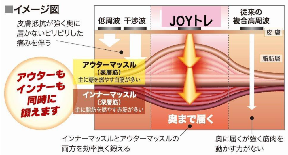 Stimulation)という電気刺激を利用し、自分では動かしにくいインナーマッスルを効率よく鍛えるトレーニングです。